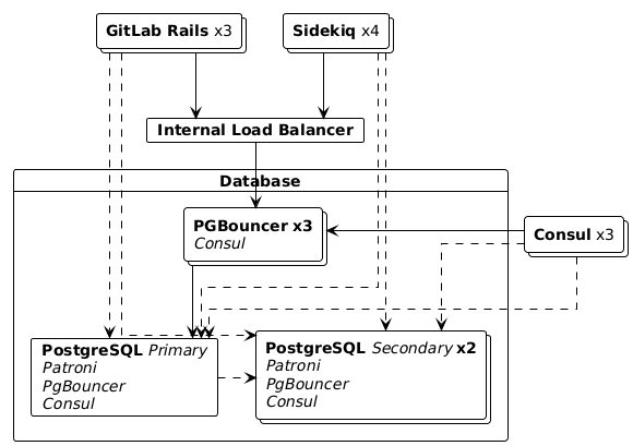 gitlab_rails['db_load_balancing'], create the array of the database hosts you want to balance. For example, on an environment with PostgreSQL running on the hostsprimary.example.com,secondary1.example.com,secondary2.example.com:gitlab_rails['db_load_balancing'] = { 'hosts' => ['primary.example.com', 'secondary1.example.com', 'secondary2.example.com'] }These hosts must be reachable on the same port configured with