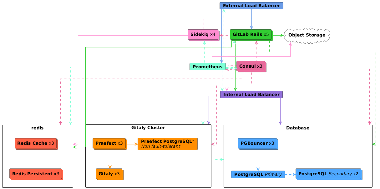 - Configure Gitaly Cluster (Praefect), provides access to the Git repositories.