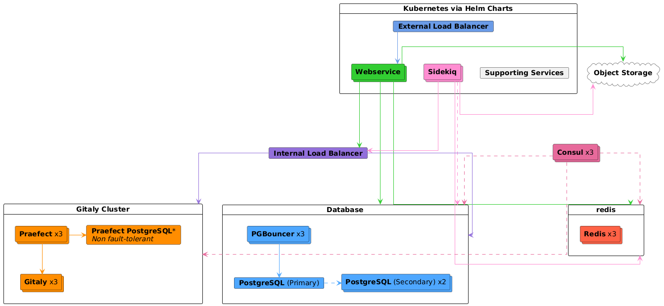 The Supporting Node Pool is designed to house all supporting deployments that are not required on the Webservice and Sidekiq pools.