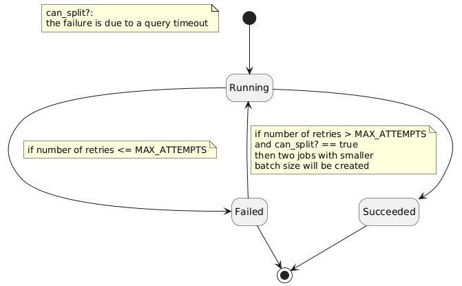 The batched background migrations retry mechanism ensures that a job is executed again in case of failure. The following diagram shows the different stages of our retry mechanism: